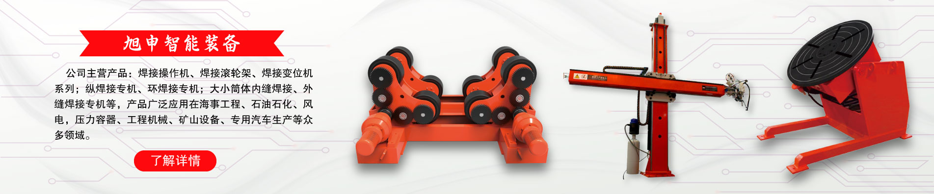 作為焊接自動(dòng)化裝備與涂裝設(shè)備的專業(yè)制造商,旭申公司始終堅(jiān)持“細(xì)節(jié)決定成敗,誠(chéng)信鑄就未來(lái)”的經(jīng)營(yíng)理念,做一流產(chǎn)品,創(chuàng)一流品牌。 旭申裝備將攜手旭申石化、旭申農(nóng)業(yè)等關(guān)聯(lián)公司一道,產(chǎn)業(yè)報(bào)國(guó)、造福社會(huì),為新時(shí)代的裝備制造、節(jié)能環(huán)保做出應(yīng)有的貢獻(xiàn)。